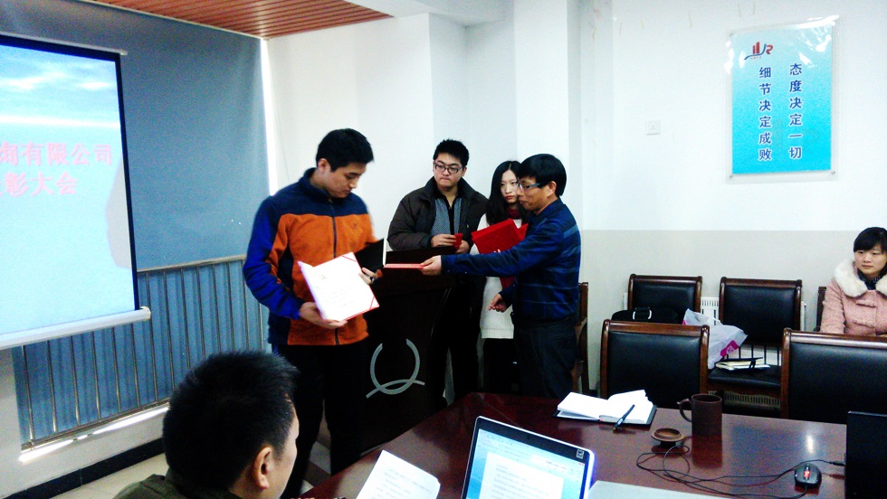2015年3月7日,我公司圆满召开2014年度总结表彰大会。会上,公司高层领导通报了上年度经营任务完成情况,表彰了先进部门及先进个人,并对公司新的组织架构进行了公布。接着,由各部门经理和优秀员工对2014年度工作进行总结。之后,公司新聘任总经理王林兴先生提出了2015年的工作目标,并对各部门工作任务进行部署。最后,由公司董事长李家金先生向优秀员工颁发了荣誉证书与奖金,并对全体公司人员和今年的工作任务提出要求,要求全体员工扎实工作、不断学习、提高敬业精神、努力开拓创新,在今后愈加激烈的市场竞争中,能够在稳定生存中求发展,并预祝2015年每一个人都能够取得新的成绩。